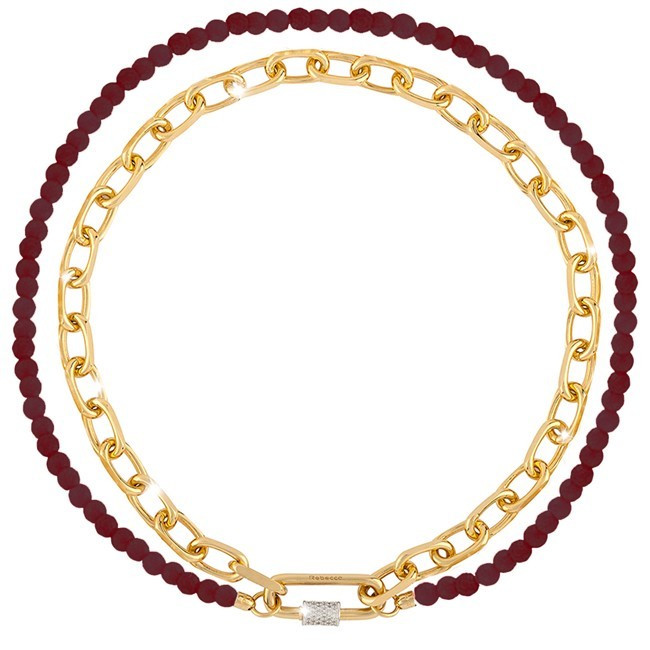 Дамско Колие Rebecca BPAKOR22   Rebecca BPAKOR22 от колекция Palermo е златисто дамско колие, изработено от бронз и естествен нефрит с покритие от жълто злато.