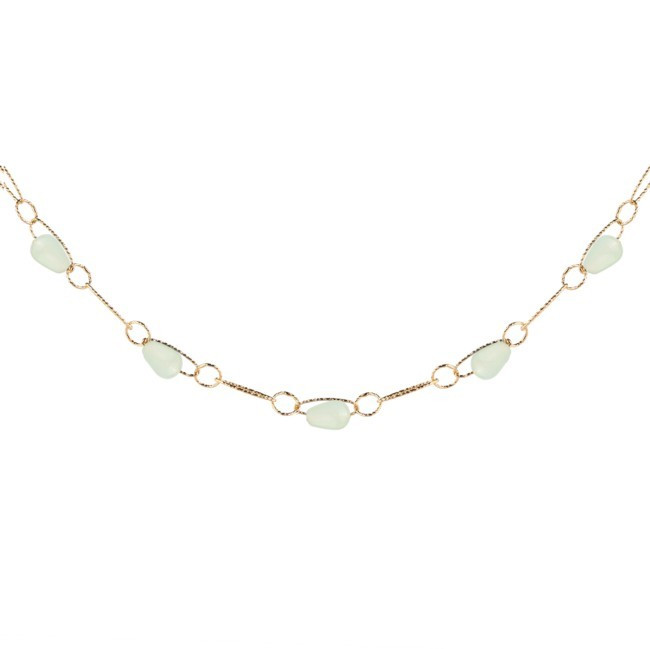 Дамско Колие Rebecca BTUKOS01   Rebecca BTUKOS01 от колекция Tulip е златисто дамско колие, изработено от бронз и естествен нефрит с покритие от жълто злато.