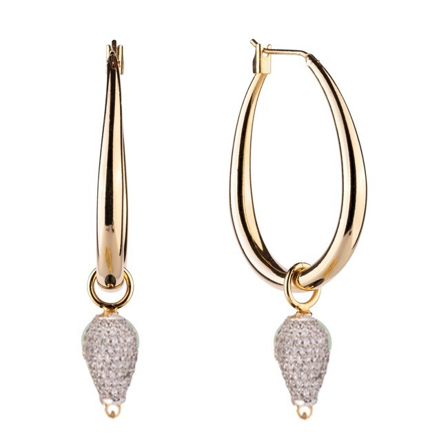 Дамски Обеци Rebecca BTUOOZ23   Rebecca BTUOOZ23 от колекция Tulip са златисти дамски обеци, изработени от бронз и естествен нефрит с покритие от жълто злато.