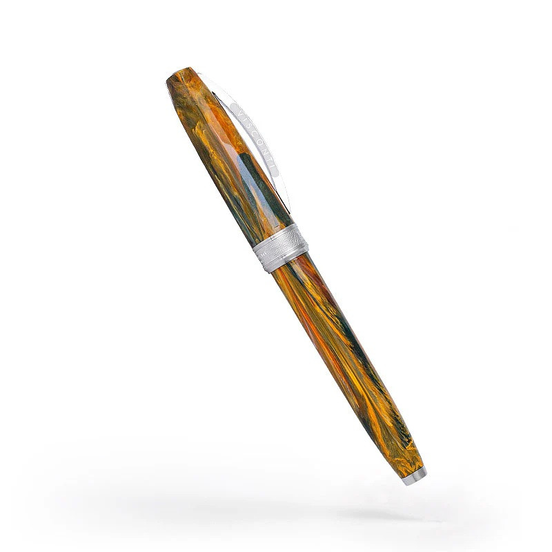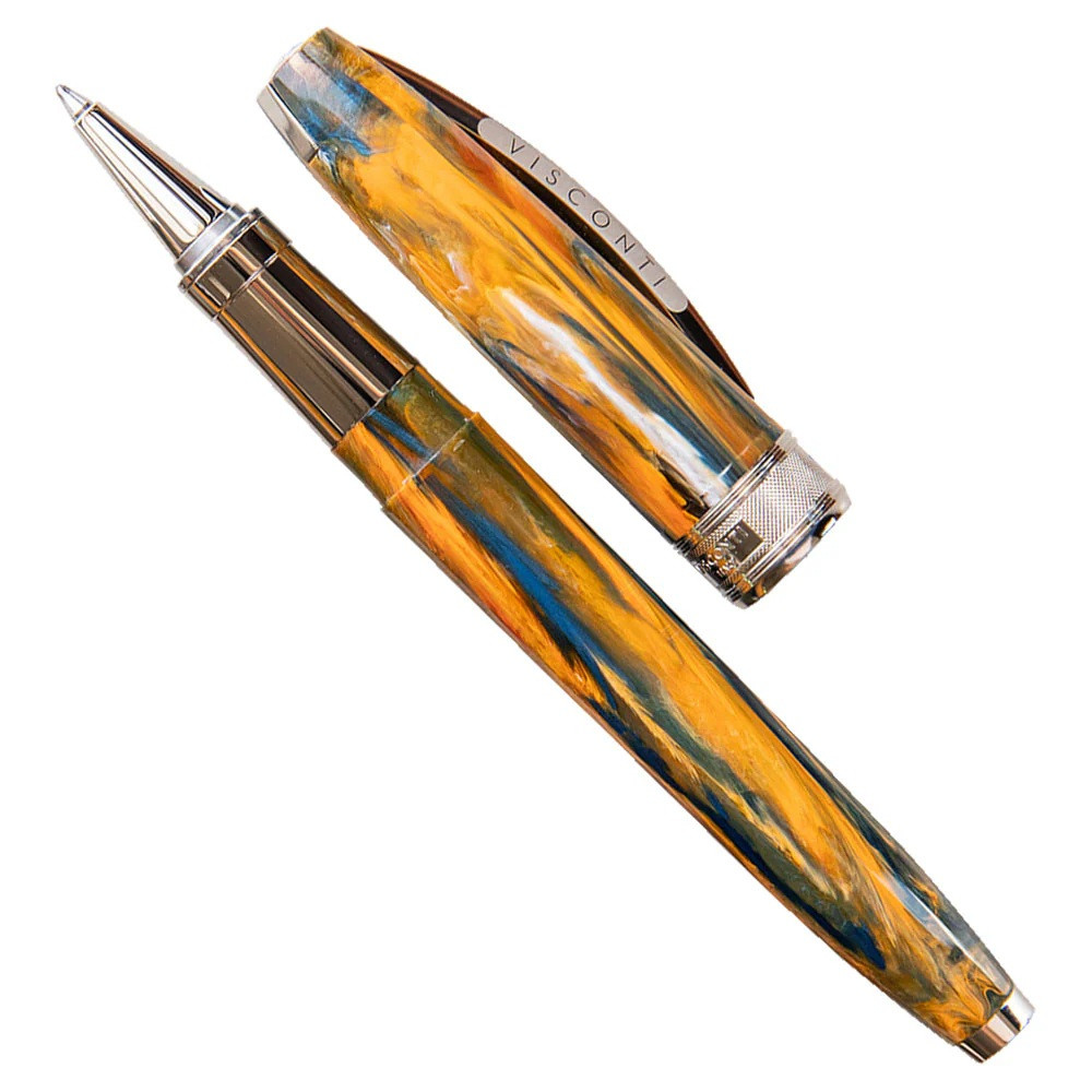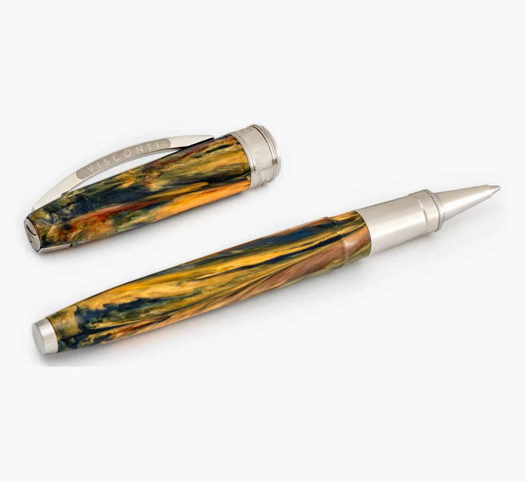 Ролер Visconti Van Gogh Café Terrace е вдъхновен от картината „Café Terrace at Night“ (1888) на Винсент Ван Гог. Изработен от цветна смола с нюанси на синьо, жълто и златисто, този италиански инструмент за писане пресъздава атмосферата на звездната нощ в Арл. Част от колекцията Van Gogh, ролерът съчетава артистичен дух, прецизна изработка и неподвластна елегантност – истински символ на италианско изкуство.