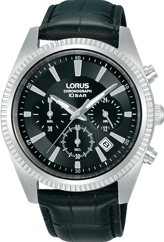 Часовник Lorus RT301LX9 – елегантен мъжки спортен хронограф, който съчетава функционалност и стил. Корпусът е изработен от неръждаема стомана, а черната кожена каишка осигурява удобство и изтънчен вид. Тъмният циферблат със сребристи луминисцентни стрелки е оборудван с индикация за дата и хронограф за прецизно измерване на времето. Минералното стъкло защитава циферблата от надрасквания, а водоустойчивостта до 10 ATM прави модела надежден избор както за ежедневие, така и за спортни активности. Идеален аксесоар за модерния мъж.