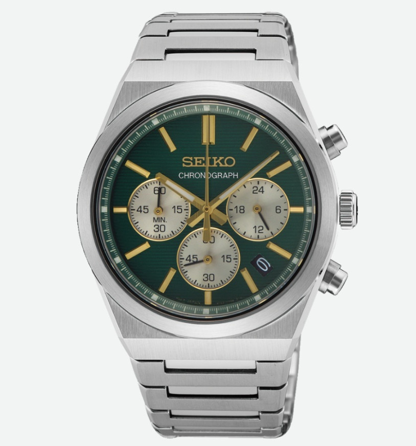 Моделът Seiko SSB461P1 е част от серията Conceptual и представлява стилен мъжки кварцов хронограф с модерен дизайн и функционалност. Със своя зелен циферблат и сребрист корпус от благородна стомана, този часовник съчетава елегантност и спортен дух. Хронографските функции, включително 60-минутен таймер и сплит време, го правят практичен избор за активния мъж. Сапфиреното стъкло и водоустойчивостта до 100 метра гарантират издръжливост и надеждност в различни условия. С 3-годишна международна гаранция, Seiko SSB461P1 е отличен избор за ежедневна употреба и специални поводи.
