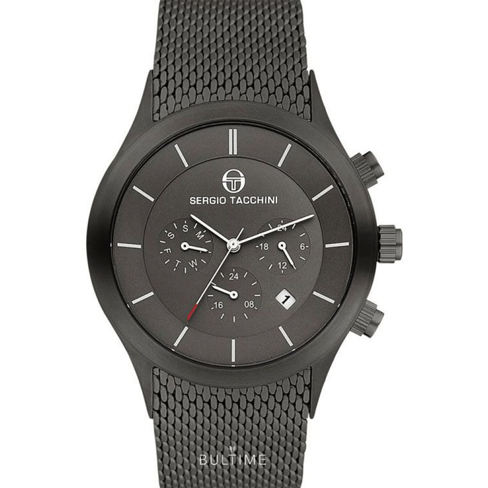 Мъжки часовник Sergio Tacchini с мултифункционален дисплей от колекцията City. Моделът е с корпус и верижка от неръждаема стомана. Минерално стъкло, устойчиво на надраскване с антирефлексно покритие. Прецизен кварцов механизъм произведен в Япония. Водоустойчивост 5 ATM - допускат се леки пръски и взимане на душ, не се препоръчва обилно мокрене.