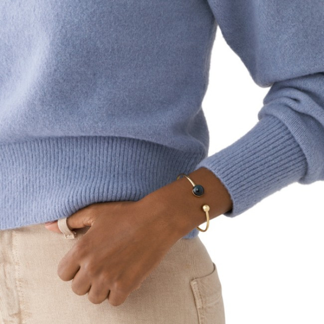 Skagen SKJ1604710 от колекция SEA GLASS е дамска гривна в златисто и синьо, изработена от неръждаема стомана и стъкло.