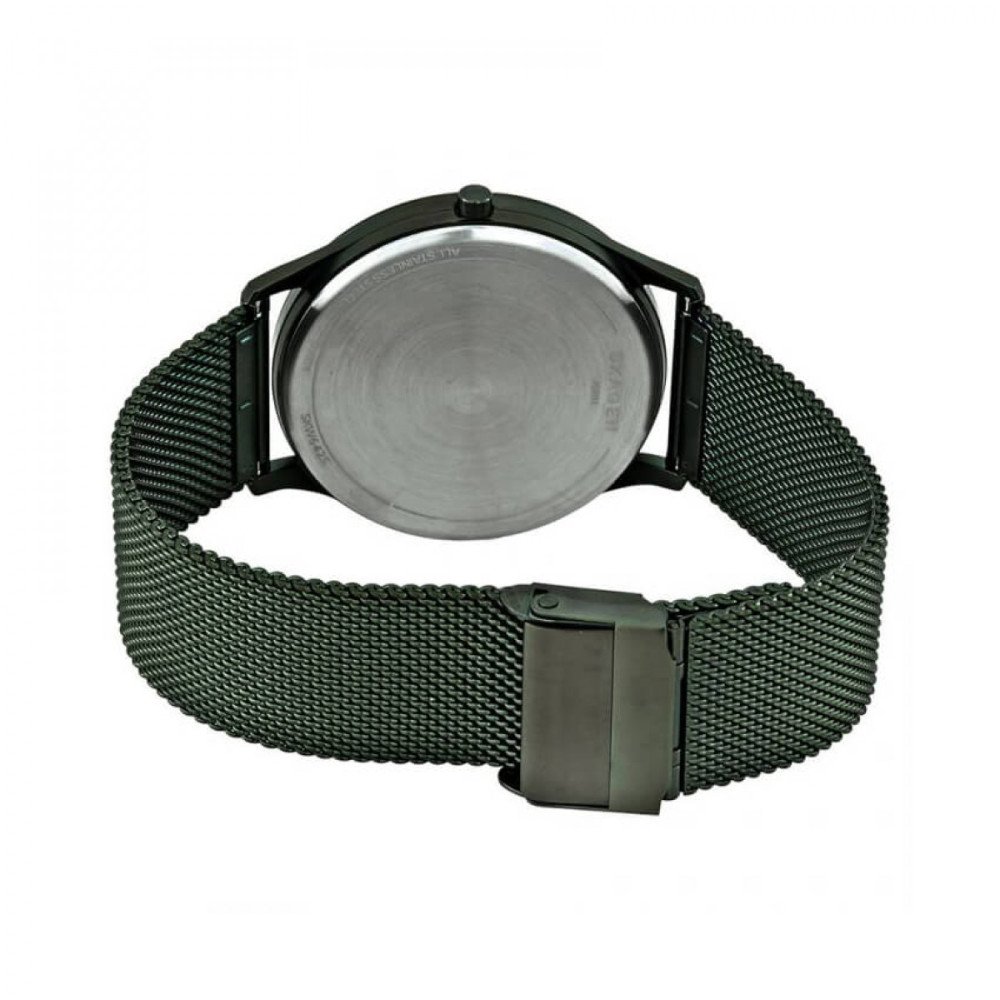 Skagen SKW6425 от колекция Jorn e мъжки кварцов часовник със сив кръгъл циферблат, зелен корпус от неръждаема стомана с широчина 41 mm и зелена меш верижка 22 mm, изработена от неръждаема стомана.