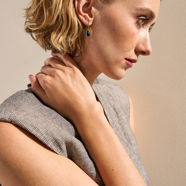 Дамски Обеци Skagen SKJ1885710   Skagen SKJ1885710 от колекция Sofie Sea Glass са дамски обеци в златисто и синьо, изработени от стъкло и неръждаема стомана.