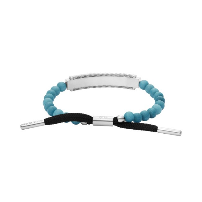 Skagen Jewelry SKJM0220040 от колекция Ankor e мъжка гривна в сребристо и синьо, изработена от стъкло и неръждаема стомана.