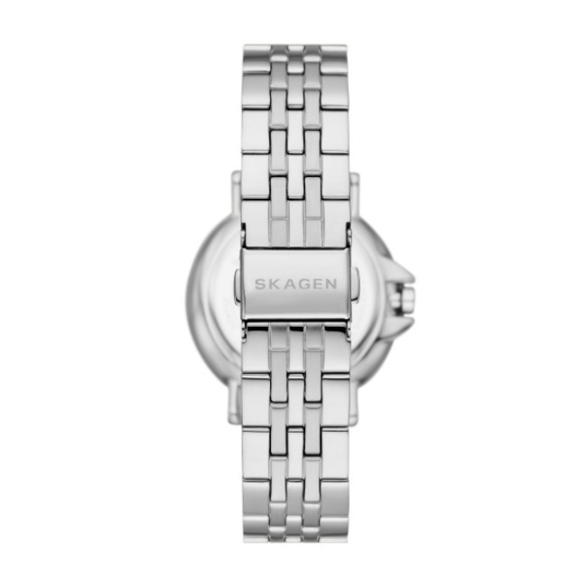 Skagen SKW3134 от колекция Signatur Sport Lille e дамски кварцов часовник със сребрист кръгъл циферблат, сребрист корпус от неръждаема стомана с широчина 34 mm и сребриста верижка 16 mm, изработена от неръждаема стомана.