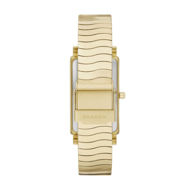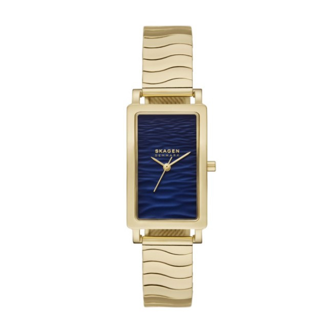 Дамски Часовник Skagen SKW3169   Skagen SKW3169 от колекция Hagen Lille e дамски кварцов часовник със син правоъгълен, north-south циферблат, златист корпус от неръждаема стомана с диаметър 43 mm и златиста верижка 14 mm, изработена от неръждаема стомана.