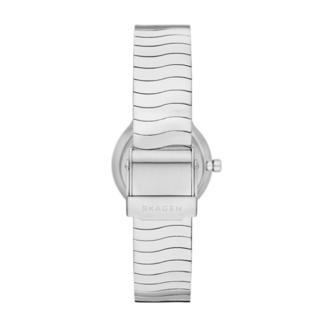 Дамски Часовник Skagen SKW3171   Skagen SKW3171 от колекция Freja Lille e дамски кварцов часовник със син кръгъл циферблат, златист корпус от неръждаема стомана с диаметър 26 mm и сребриста верижка 14 mm, изработена от неръждаема стомана.