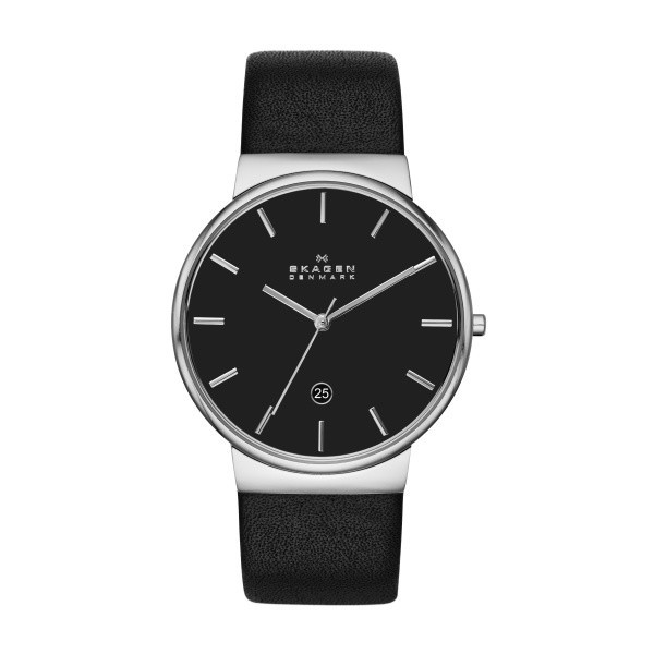 Skagen SKW6104 от колекция Ancher e мъжки кварцов часовник с черен циферблат, корпус от неръждаема стомана с широчина 40 mm и черна каишка, изработена от естествена кожа.