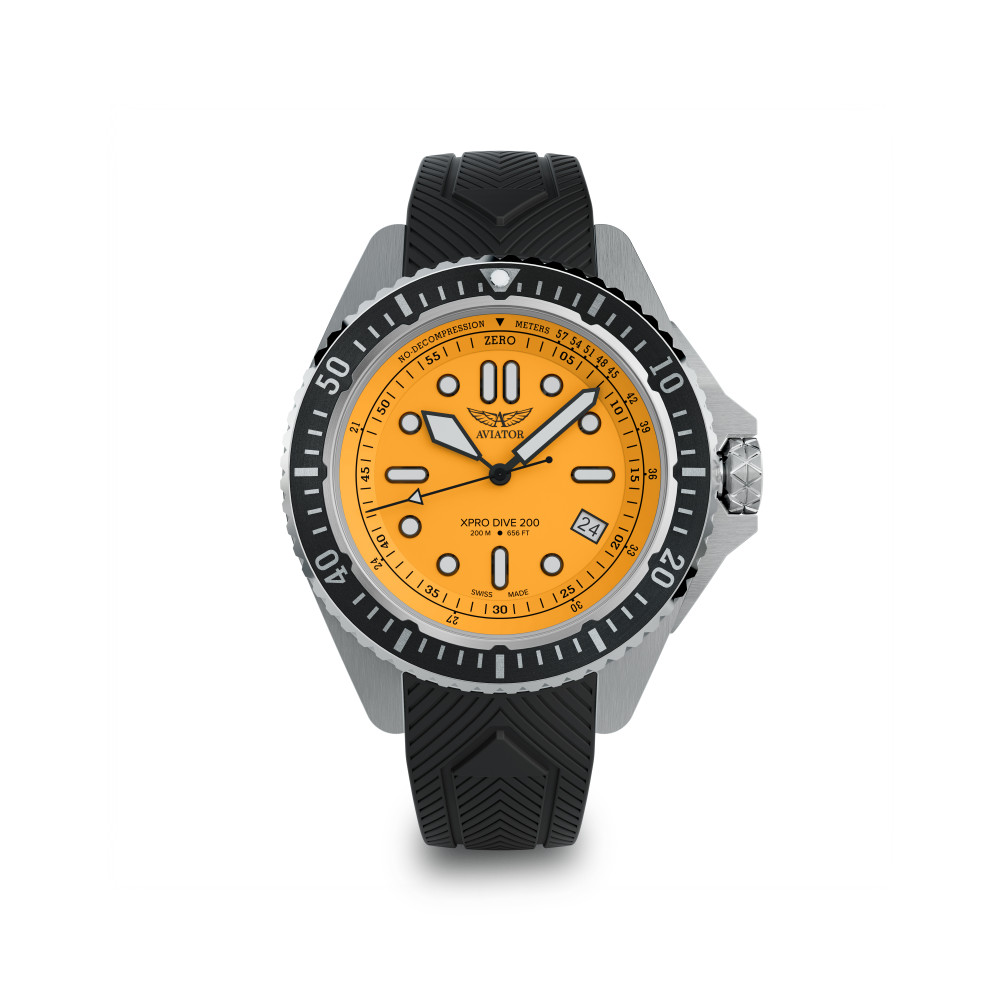Часовник Aviator V.1.42.0.375.6 е швейцарски кварцов модел, съчетаващ висока функционалност с динамичен дизайн. Оранжевият матов циферблат с контрастни индекси, запълнени със SuperLuminova, осигурява отлична четимост при всякакви условия. Корпусът от благородна стомана 316L е с диаметър 42.8 мм и е защитен от сапфирен кристал с антирефлексно покритие. С черна силиконова каишка с UV нано-покритие и водоустойчивост до 200 м, този модел е идеален за активни хора, търсещи надежден и стилен спътник. Работи с швейцарски механизъм Ronda 6003.D с до 40 месеца живот на батерията.