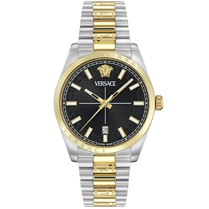 Часовник Versace VE0G00525 Millenyium комбинира италиански лукс и швейцарска прецизност в съвременен дизайн. Черният циферблат с фини детайли подчертава мъжествеността и изчистената визия на модела. Биколорната стоманена верижка с IP покритие придава модерно усещане и отличителен стил. С швейцарски кварцов механизъм, дисплей за дата, сапфир кристал и водоустойчивост до 5 ATM, този часовник осигурява надеждност, функционалност и безупречен комфорт при всякакви поводи.