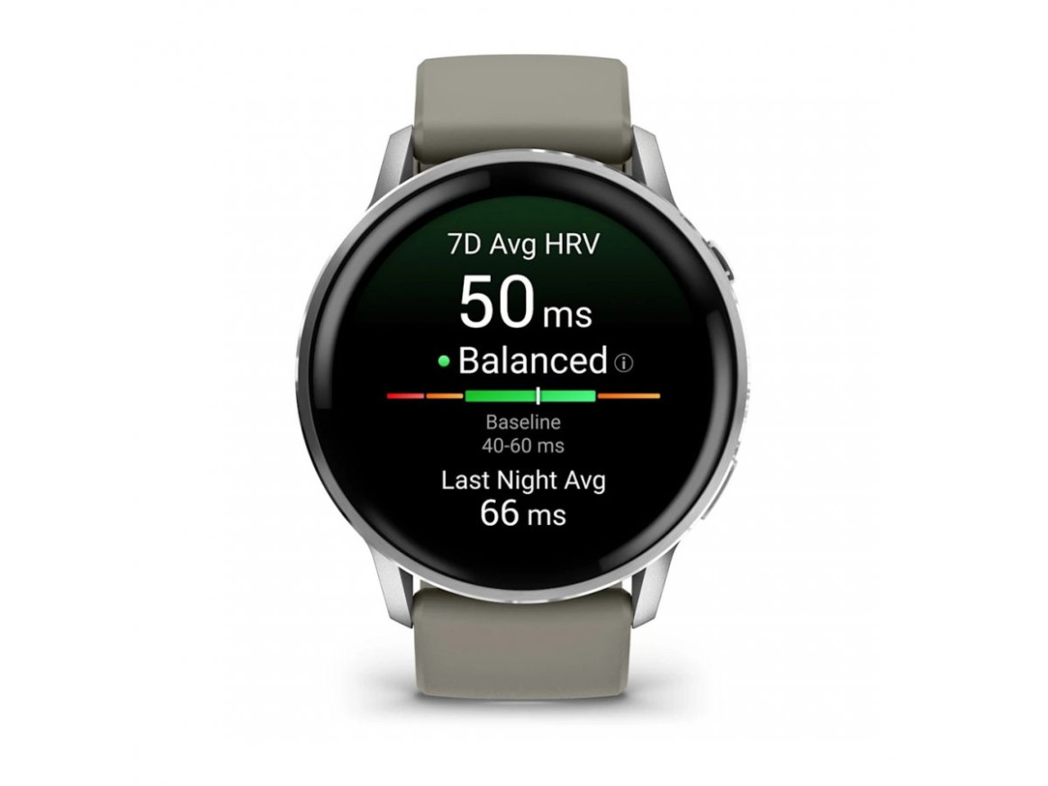 Garmin Venu 4 45mm Silver/Silver Gray е мултифункционален GPS смарт часовник с 1,4” AMOLED дисплей и до 12 дни живот на батерията. Проследява здравето 24/7 с Body Battery™, Pulse Ox, HRV и мониторинг на съня, включително женско здраве. Предлага над 80 спортни профила, Garmin Coach, анимирани тренировки, LED фенер, смарт известия, управление на обаждания и музика. Идеален за активен живот, спортни предизвикателства и ежедневие.