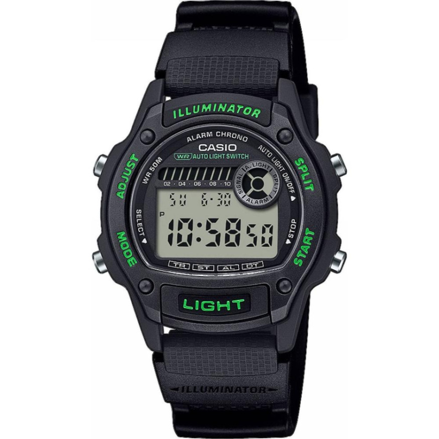 Часовник Casio W-220H-1A3VEF – практичен мъжки дигитален часовник от серията Casio Timeless Collection, съчетаващ удобство и лекота. Корпусът и каишката са изработени от устойчив полимер, а акрилното стъкло защитава дисплея. Моделът предлага ежедневна аларма, автоматичен календар, хронометър, таймер с автоматично повторение и функция за втора часова зона. LED подсветката с автоматично включване осигурява видимост в тъмното. С тегло само 27 грама и водоустойчивост до 50 м, този часовник е отличен избор за активното ежедневие.