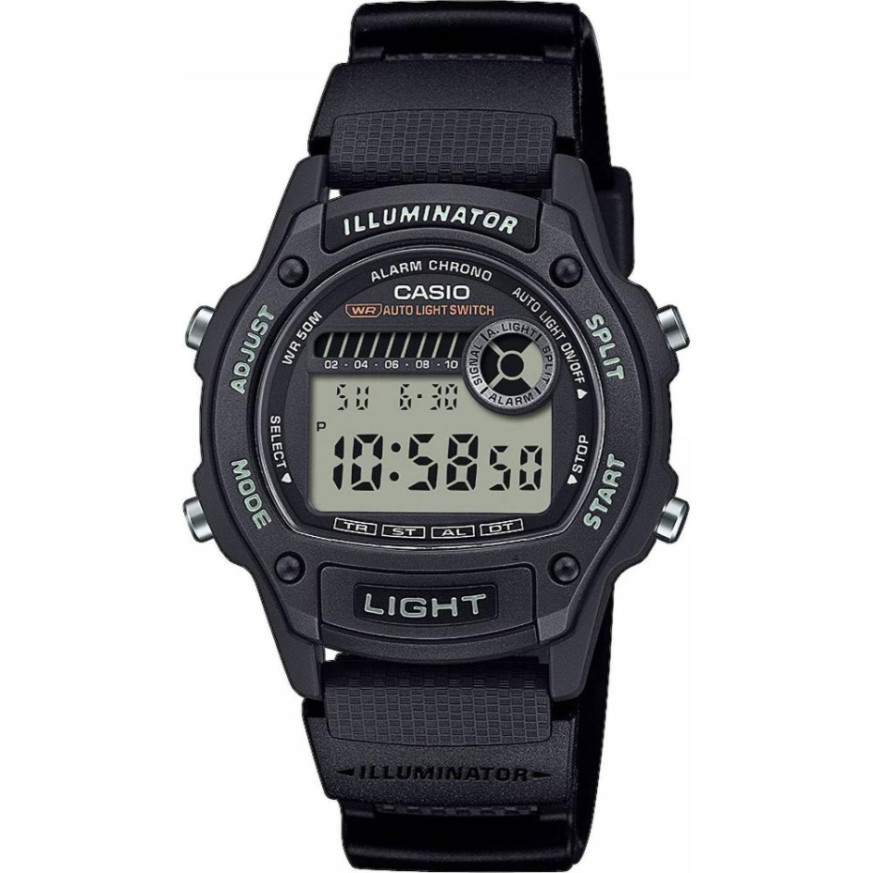 Часовник Casio W-220H-1AVEF – практичен мъжки дигитален модел от серията Casio Timeless Collection, който съчетава лекота и функционалност. Корпусът и каишката са изработени от устойчив полимер, а акрилното стъкло предпазва дисплея. Часовникът разполага с ежедневна аларма, автоматичен календар, хронометър, таймер с автоматично повторение и функция за втора часова зона. LED подсветката с автоматично включване гарантира отлична видимост в тъмното. Водоустойчив до 50 метра, този модел е подходящ за спорт и ежедневни активности.