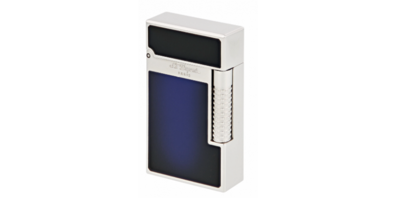 • Корпусът на запалката е от месинг, с фин външен завършек  от син преливащ натурален лак, елементи с покритие от паладий, лого S.T.Dupont